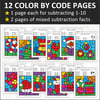This set includes 12 color by code pictures, with one page each for subtracting 1, 2, 3, 4, 5, 6, 7, 8, 9, and 10. There are also 2 pages of mixed subtraction facts. Use the worksheets for reinforcement/review or to target specific facts that students may be struggling with.